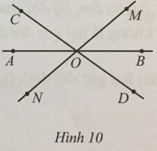 Quan sát Hình 10 và chỉ ra: a) Bốn góc kề với góc AOC (không kể góc bẹt); b) Hai góc kề bù với góc AOC.