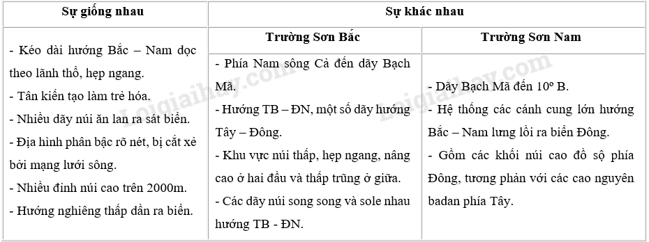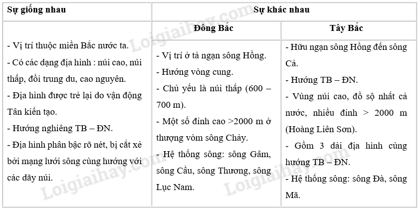 Hãy nêu sự giống nhau và khác nhau về địa hình: