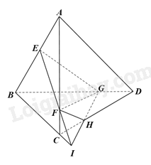 Vì \(\left\{ \begin{array}{l}H \in CD \subset \left( {ACD} \right),H \in IG \subset \left( {EFG} \right)\\F \in AC \subset \left( {ACD} \right),F \in FE \subset \left( {EFG} \right)\end{array} \right.\) nên giao tuyến của hai mặt phẳng (EFG) và (ACD) là FH.