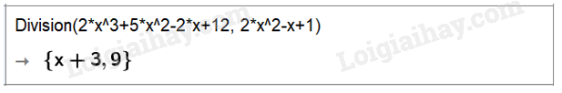 • Sử dụng lệnh Division(<đa thức bị chia>, <đa thức chia>) để tìm thương và dư của phép chia hai đa thức.