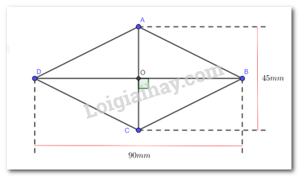 \(\begin{array}{l}OA = OC = \dfrac{{AC}}{2} = \dfrac{{45}}{2} = 22,5(mm)\\OB = OD = \dfrac{{BD}}{2} = \dfrac{{90}}{2} = 45(mm)\end{array}\)