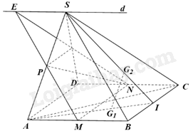 Tam giác SIA có: \(\frac{{I{G_1}}}{{IA}} = \frac{{I{G_2}}}{{IS}} = \frac{1}{3}\) nên \({G_1}{G_2}//SA\) (định lí Thalès đảo)