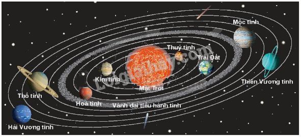 c) Sơ đồ hệ Mặt Trời trong SGK.