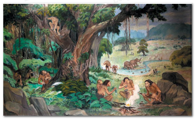 Quan sát hình ảnh dưới đây, hãy đặt các câu hỏi về những điều mà em muốn biết liên quan đến đời sống của người nguyên thuỷ (Gợi ý: Người nguyên thuỷ làm thế nào để tạo ra lửa? Họ dùng lửa để làm gì?,…).