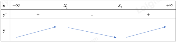 Dễ thấy hàm số đạt cực đại tại \(x=x_1\) và đạt cực tiểu tại \(x=x_2\).