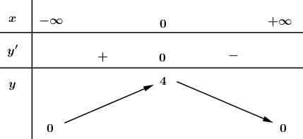 Từ bảng biến thiên ta thấy hàm số đạt GTLN tại \(x=0;\) \({y_{\max }} = 4\)