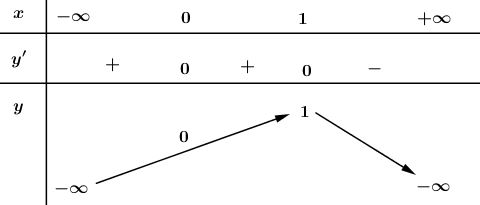 Theo bảng biến thiên ta thấy hàm số đạt GTLN tại \(x=1;\) \({y_{\max }} = 1\).
