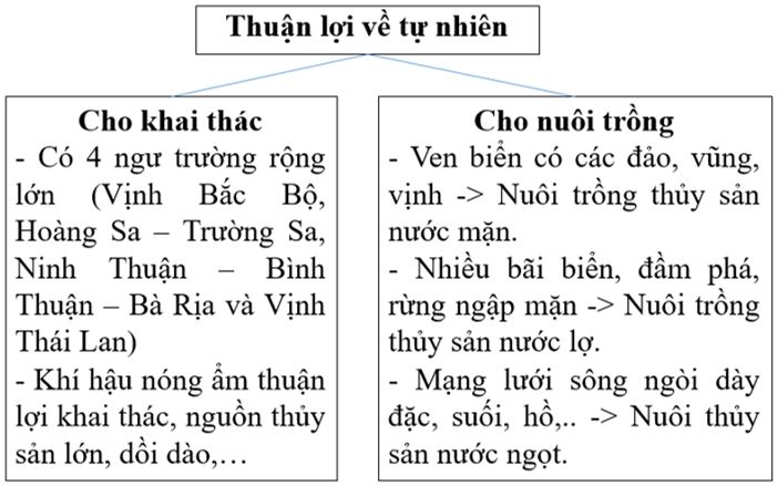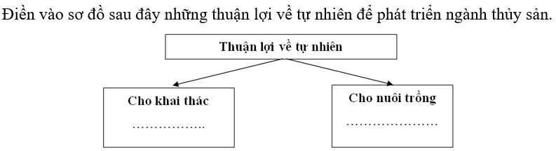 Giải bài 4 trang 26 vở bài tập Địa lí 9, Điền vào sơ đồ sau đây những thuận lợi về tự nhiên để phát triển ngành thủy sản.