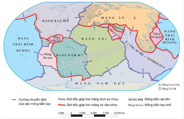 Hình 9.3. Các mảng kiến tạo của lớp vỏ Trái Đất