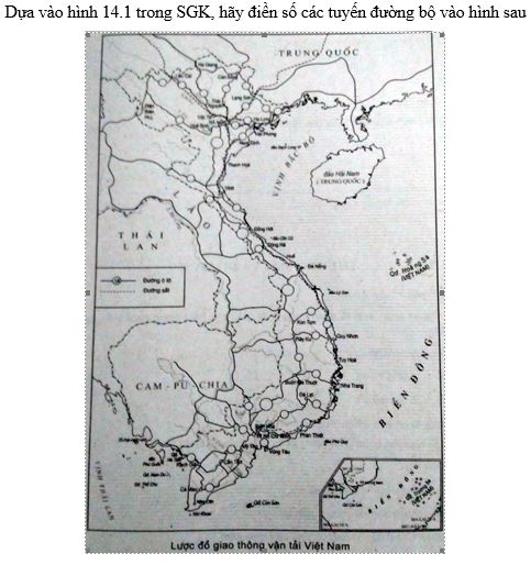 Dựa vào hình 14.1 trong SGK, hãy điền số các tuyến đường bộ vào hình sau