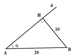 Kẻ \(BH \bot d\) ta có \(BH = 10cm\). Gọi \(\alpha  = \widehat {BAH}\)