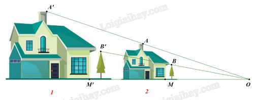Vì vậy phép đồng dạng tỉ số \(\frac{{OA’}}{{OA}}\) biến hình ngôi nhà 1 thành hình ngôi nhà 2.