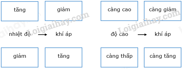 2. Biết tằng khí áp thay đổi tỉ lệ nghịch với nhiệt độ và độ cao, em hãy điền chữ “tăng” và “giảm” vào các ô cho phù hợp.
