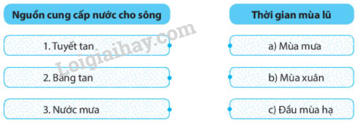– Những sông có nguồn cung cấp nước chủ yếu từ băng tan thì mùa lũ vào đầu mùa hạ.