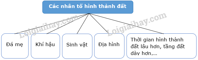 Em hãy trình bày các nhân tố hình thanh đất, bằng cách hoàn thành sơ đồ theo mẫu dưới đây: