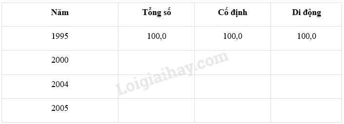 Giải bài 4 trang 54 tập bản đồ Địa lí 12, Từ bảng số liệu ở trên, hãy nhận xét về tốc độ tăng trưởng số thuê bao điện thoại nói chung và số thuê bao cố định, di động nói riêng: