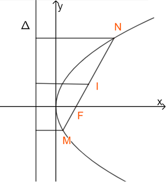 M, N nằm trên parabol nên ta có: \(d(M,\Delta ) = MF;d(N,\Delta ) = NF\)