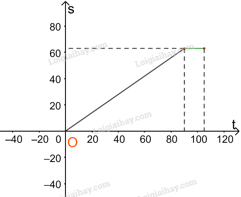 Trên đoạn [0;90] ta vẽ đường thẳng \(s = 0,7t\)