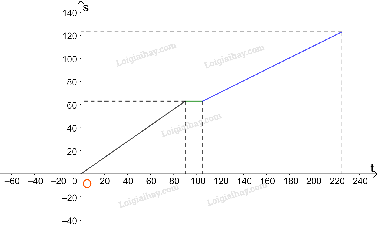 Với \(105 < t \le 225\)(phút) thì \(s = 0,5t + 10,5.\)(km)