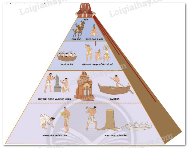 Các nhà sử học phải sử dụng tư liệu lịch sử, để có được một bức tranh lịch sử gần đúng nhất với những gì xảy ra, hoặc đã từng có trong quá khứ. Trải nghiệm công việc của một nhà sử học, em hãy quan sát và sắp xếp những nhân vật (từ số 1 đến số 6) vào sơ đồ 1 (trang 65). Khi đã chắc chắn rồi, em hãy viết tên những thành phần trong xã hội Chăm-pa tương ứng với các nhân vật trong các tác phẩm đó của nghệ thuật cổ Chăm-pa.