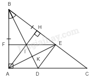 Suy ra \(BK\) là phân giác của \(\widehat {{\rm{ABC}}}\)