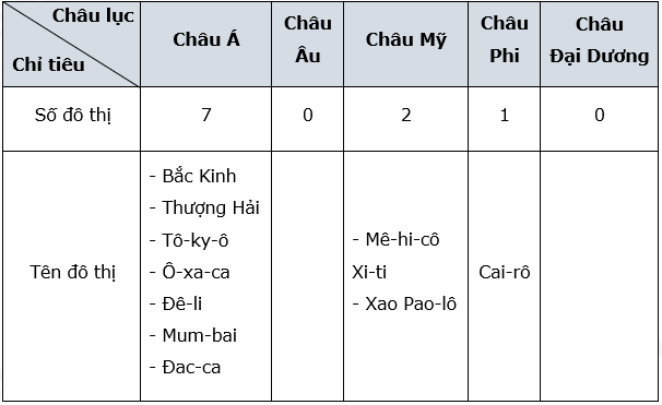 Hình 22.3. Một số thành phố đông dân nhất thế giới năm 2018