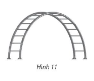 Thang leo gợn song cho trẻ em trong công viên có hai khung thép cong hình nửa elip cao 100 m và khoảng cách giữa hai chân là 240 cm
