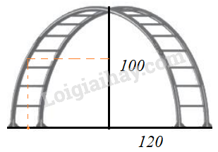 \(\frac{{{{100}^2}}}{{{{120}^2}}} + \frac{{{y^2}}}{{{{100}^2}}} = 1 \Rightarrow {y^2} = {100^2}\left( {1 – \frac{{{{100}^2}}}{{{{120}^2}}}} \right) \Rightarrow y \approx 55\left( {cm} \right)\)