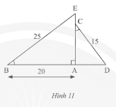 Trong Hình 11, cho biết \(\widehat B = \widehat C,BE = 25cm,AB = 20cm,DC = 15cm\). Tính độ dài đoạn thẳng \(CE\).
