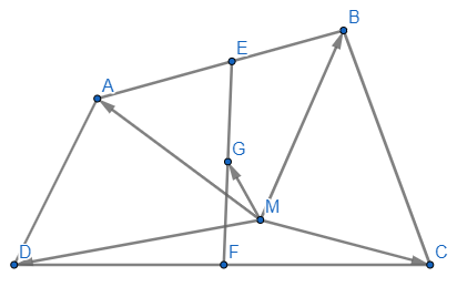 Cho tứ giác ABCD. Gọi E, F, G lần lượt là trung điểm của các đoạn thẳng AB, CD, EF. Lấy điểm M tùy ý, chứng minh rằng