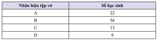 Bảng thống kê sau cho biết sự lựa chọn của 100 học sinh về bốn nhãn hiệu tập vở.