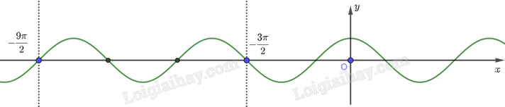 b)    Có bao nhiêu giá trị của \(x\) trên khoảng \(\left( { – \frac{{9\pi }}{2}; – \frac{{3\pi }}{2}} \right)\) để \(\cos x = 0\)?