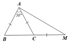 Cho tam giác ABC cân tại A có \(\widehat {BAC} = 56^\circ \). Trên tia đối của tia CB lấy điểm M sao cho AC = CM. Tính số đo mỗi góc của tam giác ABM.