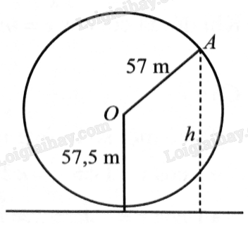 Một vòng quay trò chơi có bán kinh 57 m, trục quay cách mặt đất 57,5 m, quay đều mỗi vòng hết 15 phút