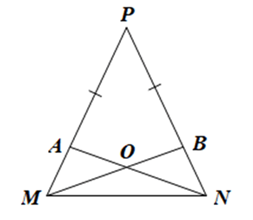 Cho tam giác MNP cân tại P. Lấy điểm A trên cạnh PM, điểm B trên cạnh PN sao cho PA = PB. Gọi O là giao điểm của NA và MB. Chứng minh tam giác OMN là tam giác cân.