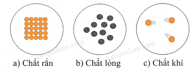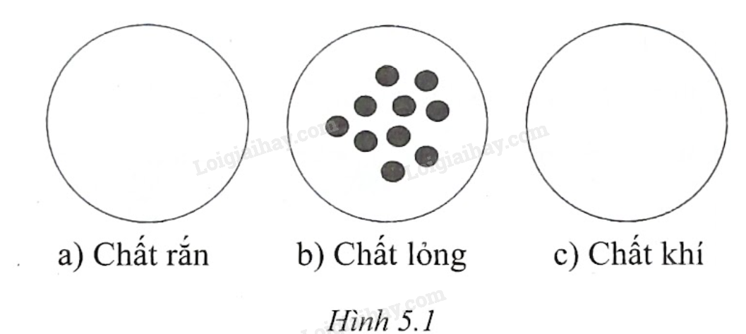 Sự sắp xếp các “hạt” trong chất lỏng được mô phỏng như hình 5.1b. Hãy vẽ lại sự sắp xếp các “hạt” trong chất rắn và chất khí vào hình 5.la, c. Vì sao chất khí lại dễ nén hơn chất rắn và chất lỏng?