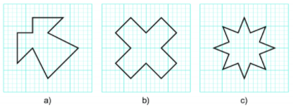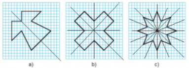 Em hãy vẽ các hình dưới đây vào giấy kẻ ô vuông rồi chỉ ra tất cả các trục đối xứng của chúng (nếu có).