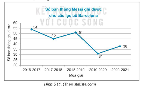 a) Biểu đồ đoạn thẳng cho biết số bàn thắng Messi ghi được cho câu lạc bộ Barcelona trong các mùa giải từ mùa giải 2016 – 2017 đến mùa giải 2020 – 2021.