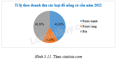 c) Năm 2021, tỉ lệ doanh thu đồ uống có cồn theo loại được cho trong biểu đồ Hình 5.11