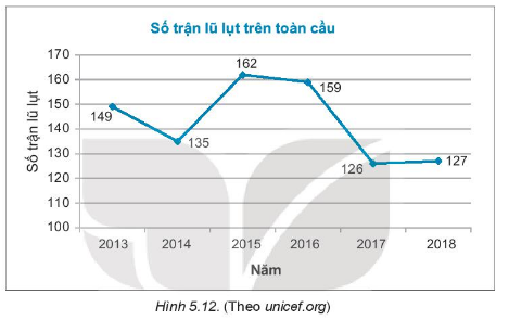 Biểu đồ Hình 5.12 cho biết số lần xảy ra lũ lụt trên toàn thế giới trong một số năm gần đây.