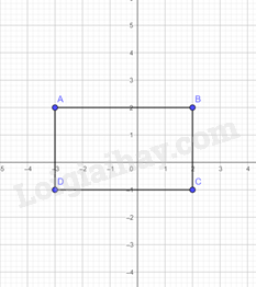 Vẽ một hệ trục tọa độ \(Oxy\) và đánh dấu các điểm \(A\left( { – 3;2} \right),B\left( {2;2} \right),C\left( {2; – 1} \right),D\left( { – 3; – 1} \right)\)
