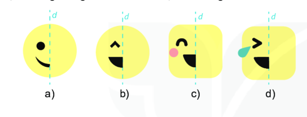 Bài 5 (5.19). Vẽ thêm họa tiết để được hình mặt cười nhận đường thẳng d cho trước làm trục đối xứng.