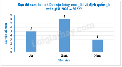 Biểu đồ sau cho biết số trận bóng đá trong giải bóng đá chuyên nghiệp Việt Nam mùa giải 2021 – 2022 mà 3 bạn An, Bình, Nam đã xem.