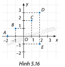 Cho hàm số \(y = f\left( x \right)\) có đồ thị gồm năm điểm \(A,B,C,D,E\) như Hình 5.16. Xác định tọa độ các điểm này.