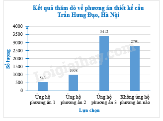Biểu đồ Hình 5.1, cho biết tỉ lệ độc giả của báo điện tử Vnexpress ủng hộ phương án thiết kế cầu Trần Hưng Đạo, Hà Nội (Phương án 1: Cầu dầm – cáp hỗn hợp; Phương án 2: Cầu vòm kết hợp dây văng; Phương án 3: dầm hộp bê tông cốt thép dự ứng lực kết hợp trụ tháp).
