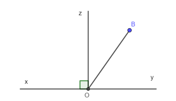c) Nếu điểm B nằm trong góc yOz thì \(\widehat {xOB}\) là góc tù hay góc nhọn?
