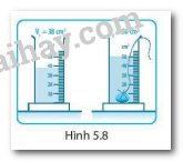 5.8. a) Hình 5.8 mô tả cách đo thể tích của một vật rắn không thấm nước bằng một bình chia độ. Thể tích của vật đó bằng