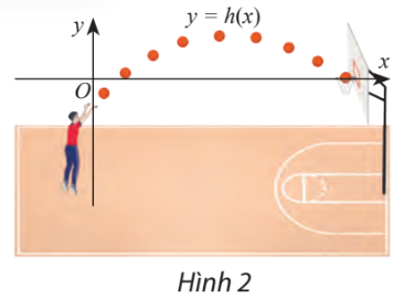 +) Khoảng mà \(h\left( x \right) = 0\) là khoảng bóng nằm ngang vành rổ