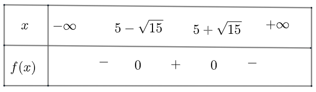 \(h\left( x \right) =  – 0,1{x^2} + x – 1\) có \(\Delta  = \frac{3}{5} > 0\), có hai nghiệm phân biệt là \({x_1} = 5 – \sqrt {15} ;{x_2} = 5 + \sqrt {15} \)