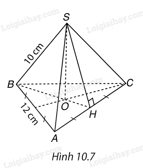 Cho hình chóp tam giác đều S.ABC có các cạnh bên bằng 10cm, cạnh đáy bằng 12 cm. (H.10.7). Tính diện tích xung quanh của hình chóp tam giác đều S.ABC.